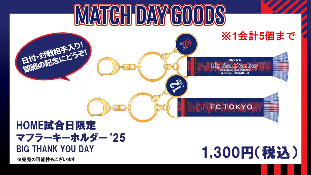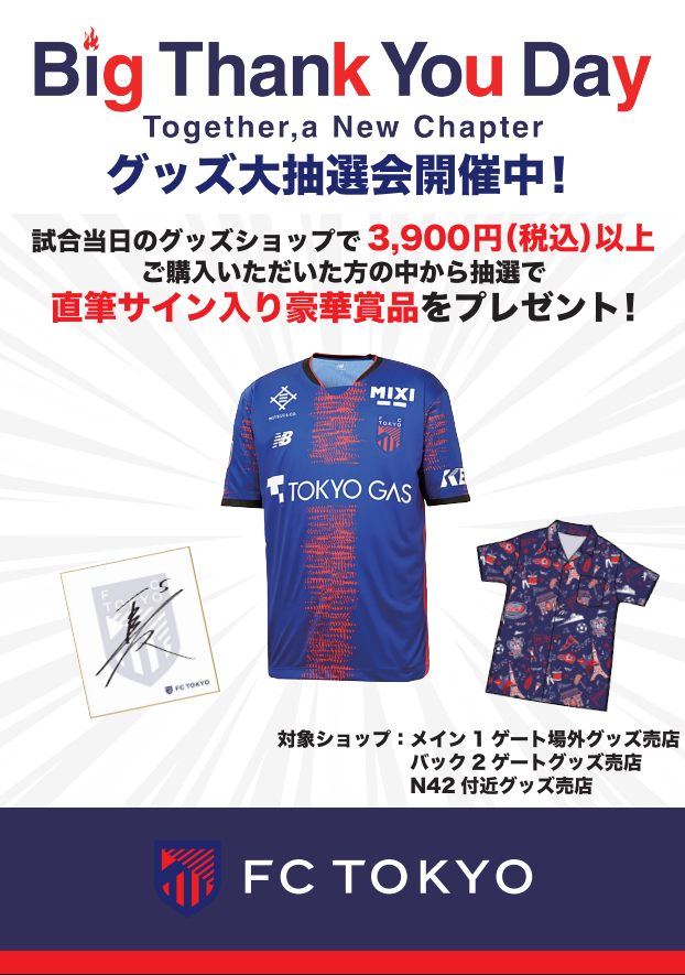 No dia 6 de dezembro (Sáb) de 2025, na 38ª rodada da Meiji Yasuda J1 League, contra o Albirex Niigata (início às 14:00 / Ajinomoto Stadium), será realizada a loja de produtos e o corner Gachagacha.