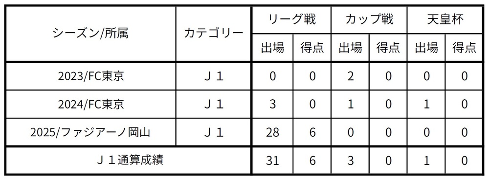 * De fevereiro a agosto de 2023, jogou como jogador registrado na categoria 2 do FC Tokyo. A partir de agosto, pertence ao time principal.