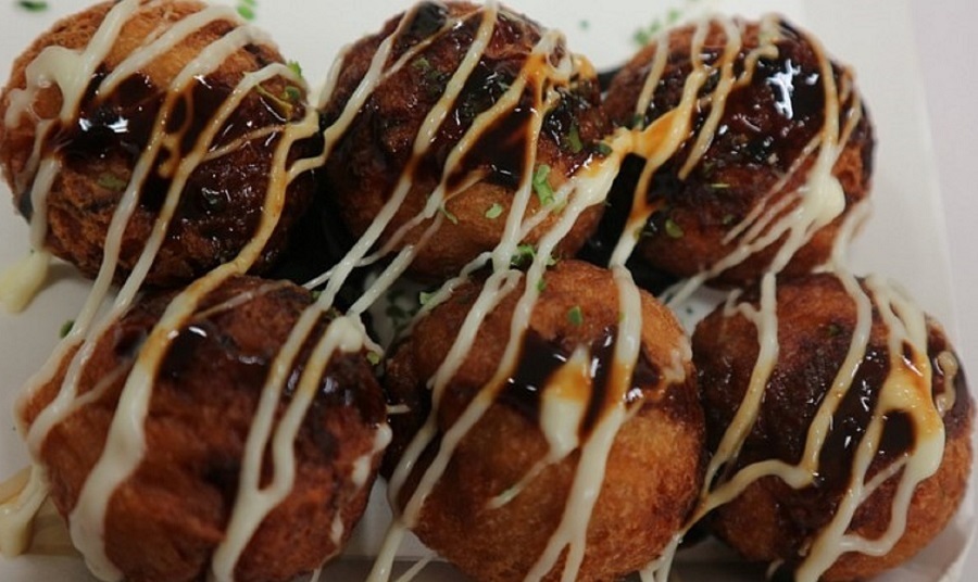 "Por fora crocante! Por dentro suculento!! Que tal um takoyaki frito na mão com uma cerveja?"