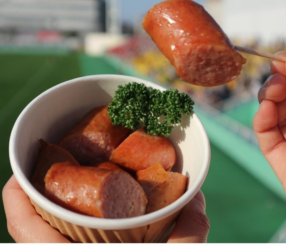 "Salsichas suculentas autênticas da Alemanha estão disponíveis! Também vendidas em conjunto com cerveja artesanal e batatas!"