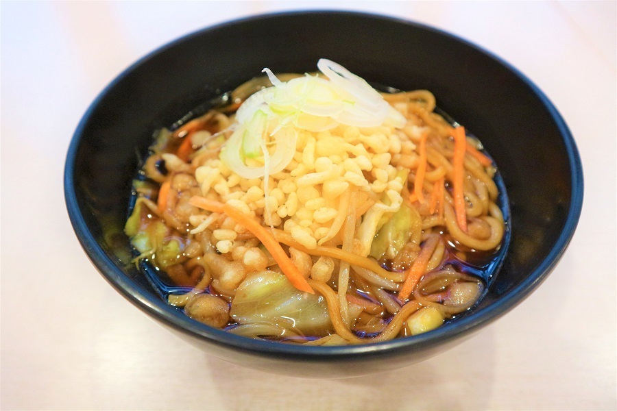 "Yakisoba com caldo de dashi ao estilo japonês, uma especialidade local nascida na província de Aomori! Aproveite esta oportunidade para experimentar!"