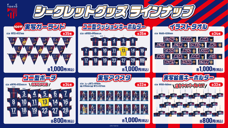 主场比赛时,将销售印有日期和对手的比赛日商品。每次球员也不同!是观赛纪念的绝佳商品。