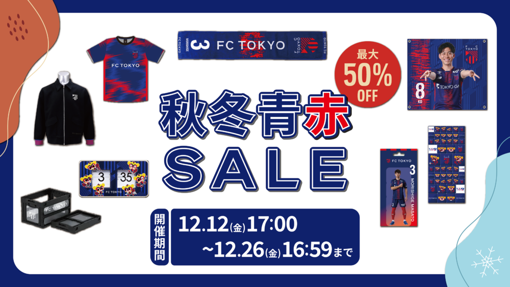 自12月12日(周五)起,为感谢一直以来支持官方商品的球迷和支持者们,我们将举办“FC东京秋冬青赤促销活动”! 请务必把握此次机会购买。