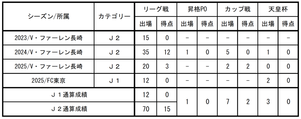 □出场记录(截至2025赛季结束/J联赛所属期间)