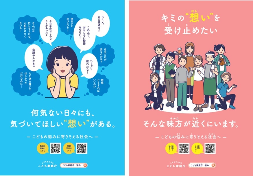 為了實現這樣的社會,我們認為必須從孩子的視角出發,打造一個讓面臨不安與煩惱、感到痛苦的孩子們能夠輕鬆傾訴心聲的環境,並且陪伴他們面對不安與煩惱,協助解決這些問題。因此,我們成立了以廳內年輕職員及地方自治體等現場經驗者為中心的「關於接納孩子煩惱場所的專案小組」,致力於打造一個所有孩子都能向值得信賴的大人傾訴自己想法與煩惱的環境。