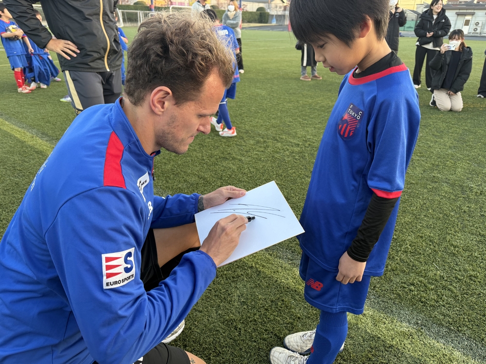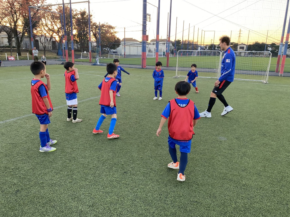 在FC東京足球學校中,透過與頂級隊伍選手的交流,